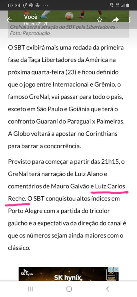 Será hoje à note.O Capitão Reche vai ser comentarista do Grenal no SBT.