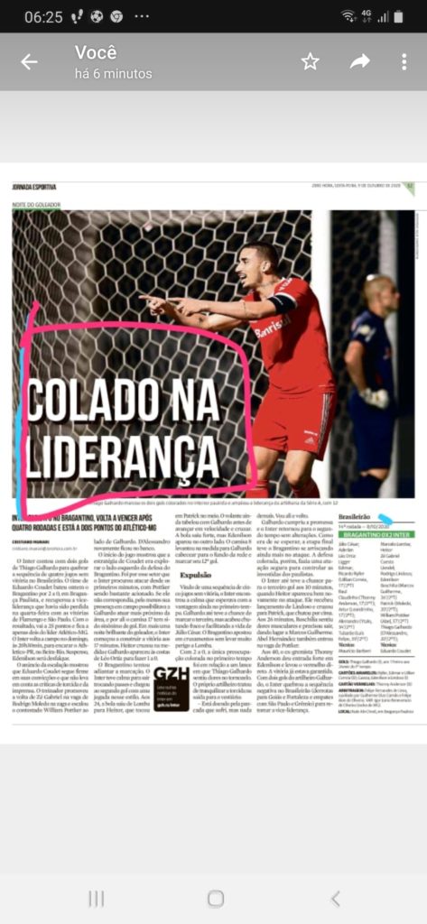 Se o Flamengo vencer a sua partida atrasada coloca o Inter em 3º.
