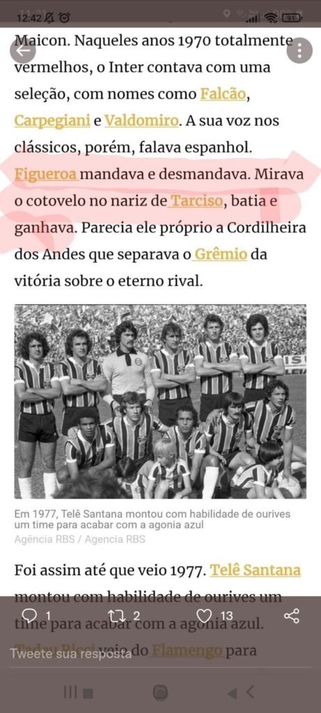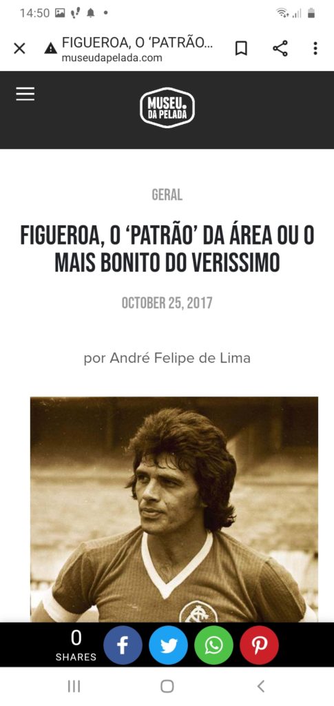 “Além de craque, o “patrão da área” declamava Pablo Neruda como poucos: “E na saída do jantar, já na rua, olhando as estrelas, o Figueroa lascou o Neruda — Figueroa é fã de Pablo Neruda, especialmente do “Poema 20” — diante de uma platéia fascinada: “Andre Felipe de Lima- Museu da Pelada.)
